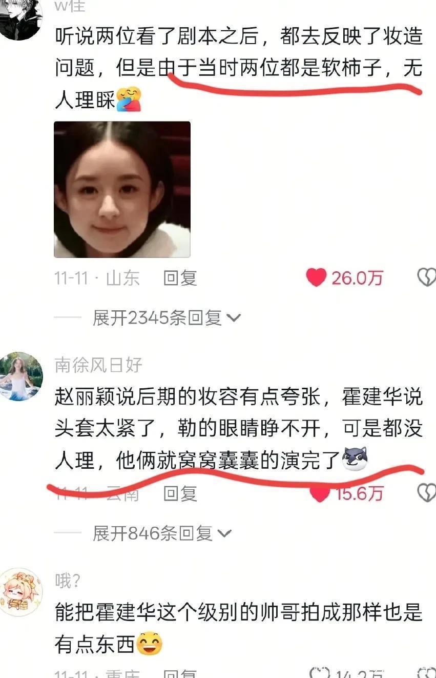 扒了一下才知道,原来是因为一位网友爆料:对于当年在《花千骨》中的妆造,两人其实不太满意,尤其是霍建华的熊猫眼,赵丽颖的蓝色妖姬唇色那几个造型。但两个人都很好说话,就被剧组忽略了。